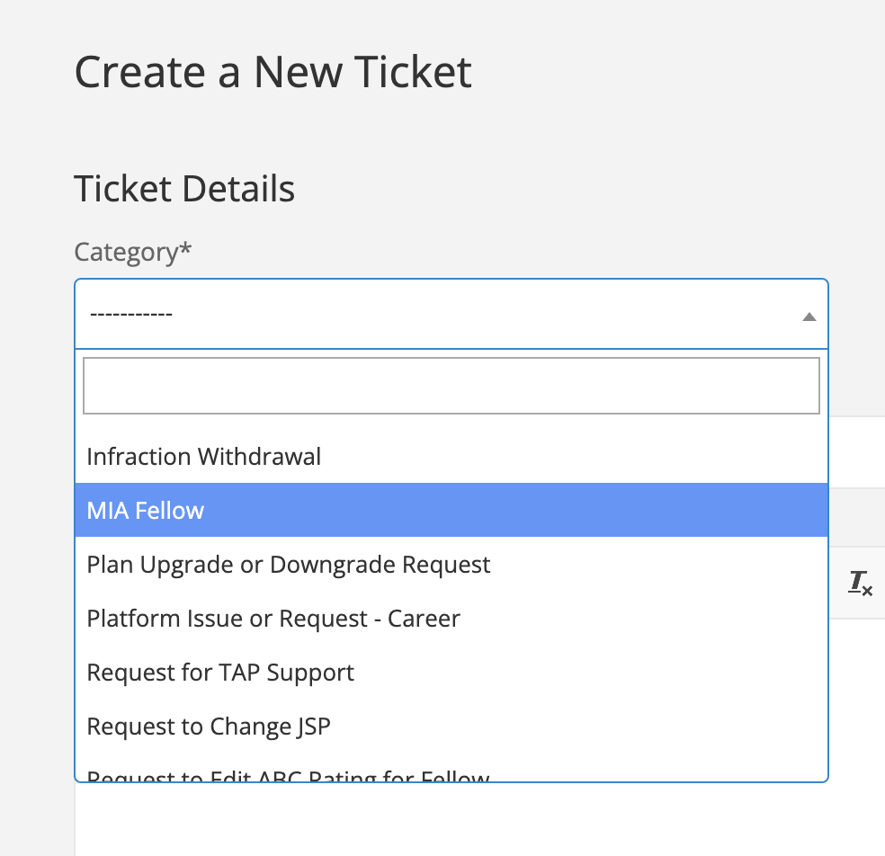 Step 2: Once a fellow has been unresponsive for 2 consecutive weeks, use the Submit ticket link to notify CXOps that your fellow is MIA